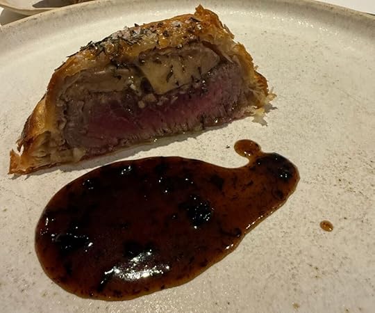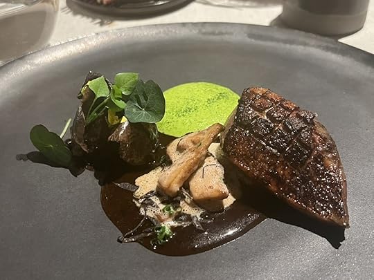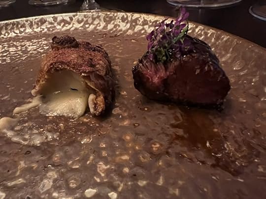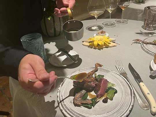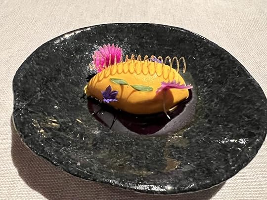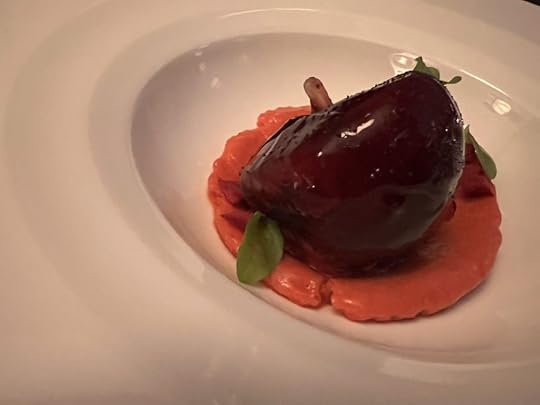 The duck dish was accompanied by a 2022 Clos de la Chapelle “En Carelle” Volnay, perhaps the best wine of the evening, delicate with a long subtle finish.