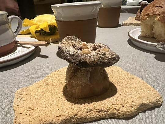 Next came an entirely mushroom-based dish. We were there in peak mushroom season, mid-September. Since all of Svalbard is above the tree line, mushrooms that grow in association with tree roots—and that includes most of the mushrooms we eat in temperate climates—cannot grow there. But there are a number of varieties that thrive there, and people avidly forage them.