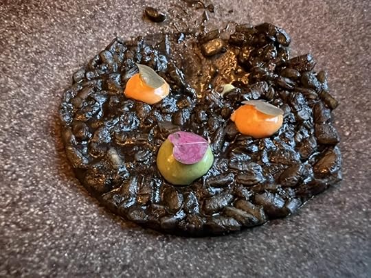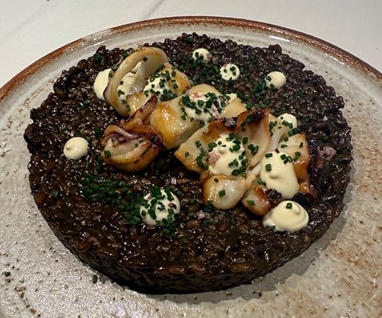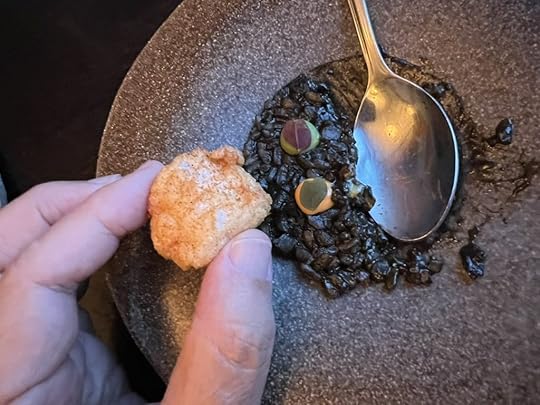 The rice was cooked with squid ink, giving it a sweetness, and topped with dabs of mayonnaise, some seasoned with piquillo peppers (no doubt from the chef’s native Spain) and some with locally harvested plankton.