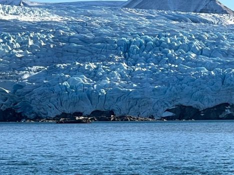 More than half of the archipelago is covered with glaciers. Here’s a shot I took on the fjord in which Huset’s town Longyearbyen sits.