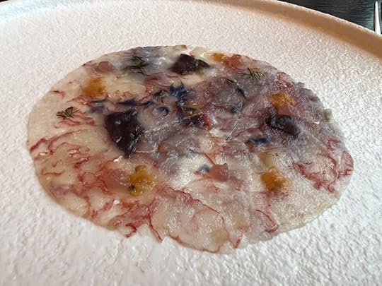 As an aside here, I want to note that I am holding Chef Alberto Lozano to the same standard that I would a top restaurant in mainland Europe. I recognize that he faces challenges that a chef in Paris would never dream of having to deal with. Almost everything has to come across the Arctic Ocean, often ordered weeks in advance. The pool of competent help is tiny or nonexistent on Svalbard. The availability of locally foraged ingredients is subject to the unpredictability that the extreme arctic environment imposes. And the arrival of customers is far harder to forecast than on the mainland. But he aspires to world-class excellence, and I hope that my critiques will be taken for what they are: suggestions that a well-wisher hopes will be helpful.