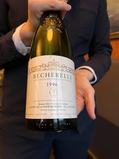 What did ease my disappointment at the texture of the cod was the 1996 Savennieres Becherelle from Nicholas Joly, the first wine that seemed likely to be from their cellar collection rather than a new acquisition. This was a serious wine with complexity of taste and aroma and a unique personality.