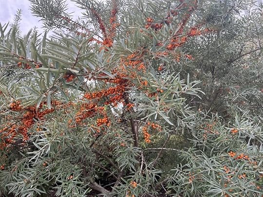 Sea buckthorn is a common plant along the arctic coasts, where its salt tolerance allows it to thrive. It is an important source of vitamin C in the local diet. Its orange berries have a distinctive bright and sharp flavor.