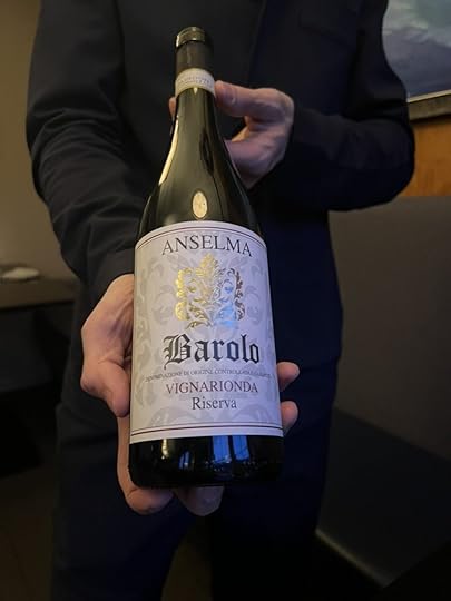 To accompany the mushrooms, the sommelier brought a Barolo, Anselma Vignarionda Riserva 2011. Its tar and smoked meat bouquet worked well with the dish.