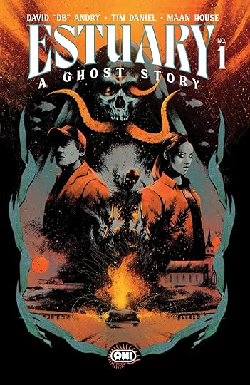 Estuary opens with the striking visuals of a sunset vista over a beautiful Monterey bay and a car engulfed in flames crashing through a bridge’s guardrails to plummet into the water below. The action quickly unfolds across a series of panels, with the crash sequence smartly rendered in a beautiful spl