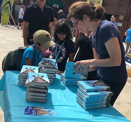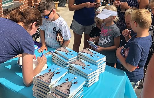 I had a great time meeting lots of kids (and teachers and librarians too!) at the Yard Goats game in Hartford, CT on August 23. It was Reading in Summer Night, and kids had gotten free game tickets as a reward for meeting their summer reading goals. What a great way to celebrate reading! Thanks to the Hartford Yard Goats and Simon & Schuster for sponsoring the giveaway.