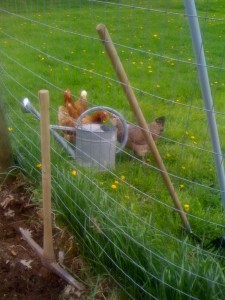 Meanwhile the adult hens are pecking their way across the lawn as I write this, growing fat on earthworms, grubs, and sweet young shoots. And giving us an egg each per day.