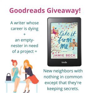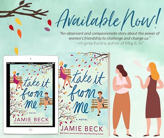 I’m also very grateful to author Virginia Kantra for her kind words (pictured here) and for author Camille Pagan’s support, who said, “Clever, insightful, and brimming with empathy, Take It from Me is Jamie Beck at her best. The story of two very different neighbors closely guarding secrets who have more in common than either woman can imagine, Beck’s latest novel is a potent reminder that we are able to know the interior lives of those we care about—if only we can find the courage to ask.”
