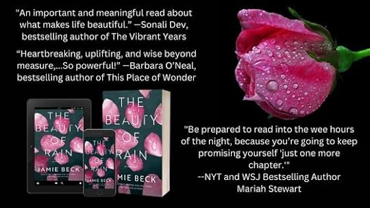 “A thoughtful and clear-headed exploration into life’s most brutal challenges. Jamie Beck insightfully dives into the intricacies of grief, marriage, ambition, and love of family in a way that will make you stop and ponder your life choices. An important and meaningful read about what makes life beautiful.” —Sonali Dev, bestselling author of The Vibrant Years“Jamie Beck’s The Beauty of Rain is a poignant look at love and hope, grief and healing, and finding peace after life-shattering loss. At the heart of this wise, insightful book is a beautifully flawed family—sisters, spouses, children, parents—in all their messy glory. Be prepared to read into the wee hours of the night, because you’re going to keep promising yourself ‘just one more chapter.’” —Mariah Stewart, New York Times and Wall Street Journal bestselling author“Heartbreaking, uplifting, and wise beyond measure, The Beauty of the Rain is a masterful tale rendered perfectly by an author truly hitting her stride. I was completely captured by the story of two sisters who each have to learn to really live—before they run out of chances. So powerful!” —Barbara O’Neal, bestselling author of This Place of WonderHere’s the blurb:Winning the lottery changed Amy Walsh’s life, but the cost was greater than she could bear. In the aftermath, she struggles to find joy and purpose. Only one thing feels certain now—she will never spend one cent of the prize money on herself.Worried, her older sister, Kristin DeMarco, invites Amy to live with her family while she heals. Unfortunately, this arrangement leads to trouble for Kristin: Divided focus affects her career. Her daughter prefers Amy to her. And Amy’s unsolicited opinions provoke tension between Kristin and her husband.Meanwhile, Amy is making drastic plans of her own, which include giving away all her money. But first she must convince Kristin not to squander her most valuable asset—time with her family.As the sisters help each other reimagine their futures, life’s unpredictability sends them to surprising places that test their love and resilience. Will they learn to live in the now, before it’s too late?I’m giving away the last paperback ARC to one lucky winner. For a chance to win, add The Beauty of Rain to your Goodreads “Want to Read” shelf, then let me know that you’ve done so on my Facebook page (the post with this same image). I’ll be choosing a winner in a couple of days. You can also find all kinds of giveaways and celebratory events on the WFWA site today. Good luck!
