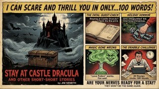 Stayat Castle Dracula and Other Short-Short Stories, a chapbook,collects 26 tales, 23 of which are drabbles. With the three other stories, theauthor “splurged” and indulged himself with an additional 100-200 words.
