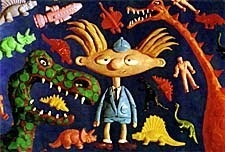 *Above two stills show the prototype for Hey Arnold, which debuted as a short for Sesame Street, and a still from a "Penny" cartoon made for Pee Wee's Playhouse, both of which experimented with an innovative 2D and 1/2 stop-motion clay technique.
