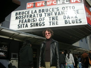 Nina Paley beaming with pride in front of NYC's IFC Theatre with her film on the Marquee. Her feature ran at the theatre from Dec 25-31, 2009.