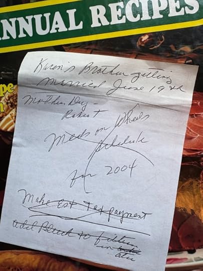 She would have been 71 when she wrote this note. The top note references Karen’s brother getting married. He has two kids now, one in college. She then notes Mother’s Day. She had seven children, no doubt ...