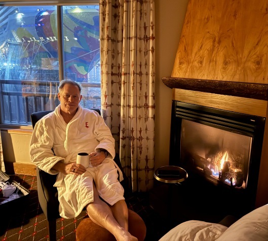 We began the trip per our usual routine, staying the first night at The Edgewater Hotel next to the pier where we would board our ferry in the morning. There’s a giant cruise ship over my shoulder in this photo, just outside our room.