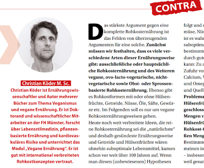 Das stärkste Argument gegen eine komplette Rohkosternährung ist das Fehlen von überzeugenden Argumenten für eine solche Ernährungsweise. Zuerst ist es wichtig festzustellen, dass es viele verschiedene Arten von Rohkosternährung gibt: ausschließliche oder hauptsächliche Rohkost, vegane, ovo-lacto-vegetarische oder nicht-vegetarische, Obst-basierte oder Sprossen-basierte oder Rohkostformen mit oder ohne Hülsenfrüchte, Getreide, Nüsse, Öle, Säfte, Gewürze etc. Im Folgenden soll es nur um vegane Rohkosternährungsweisen gehen.