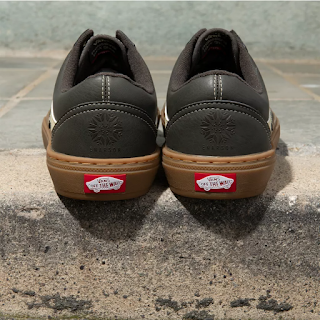 In addition to some all canvas versions of the "old skool" shoe - and some versions that are all canvas EXCEPT the Vans strip that is actual real leather - Vans has an all synthetic colourway of an "old skool pro BMX", namely the "(Dennis Enarson) olive/gum" colourway.