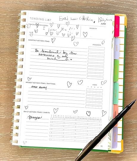 My PowerSheets goals are extra focused this month—perhaps my simplest Tending List in years. The kids obviously did some decorating for me. After May, I need a month to listen to the Lord, learn (I’ve downloaded several books and courses of various kinds!), and renew my mind in scripture as we reach the mid-year mark.