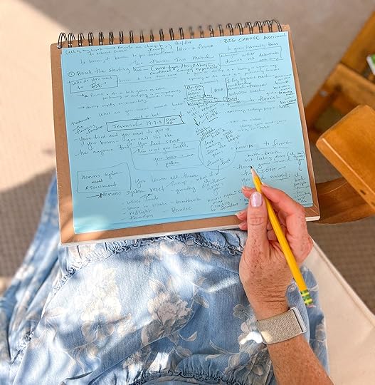 — I started a book writing training program to help me learn a system that helps break through writing barriers. I’m very grateful for this, as I’ve often struggled with the process. I’ll complete the coursework through July and start a 90-day book writing print in August. I have started to collect notes with their method, and I have forty-six pages like this! It’s been so freeing to focus on the process instead of the results at this point. Little by little…