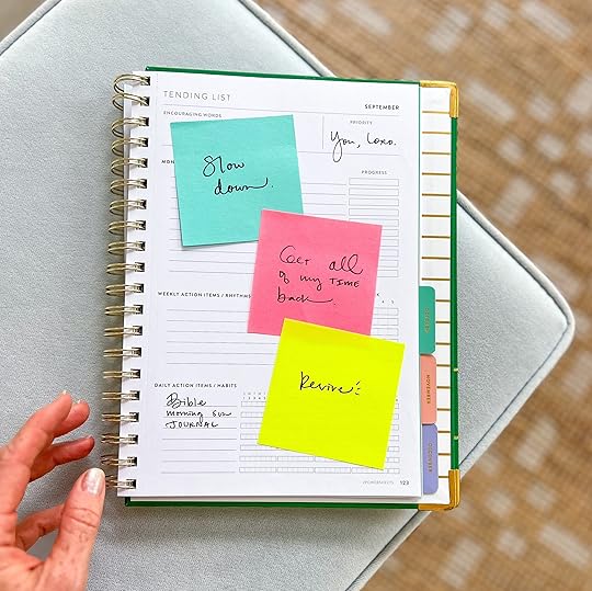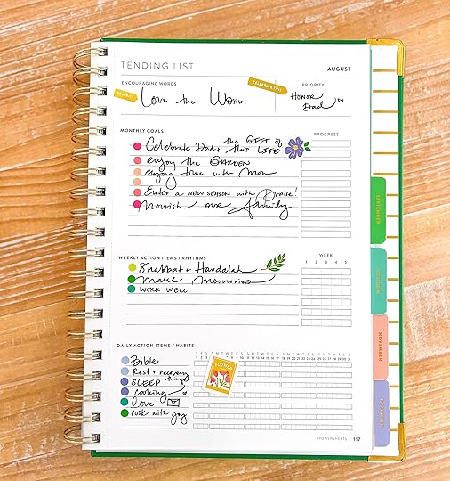 — And finally, I need some sleep. It was an emotionally challenging month, and I decided to step outside the box… or inside the PostIt Note… this month with my Tending List. Speaking of PowerSheets, I’m eagerly looking forward to the new launch. Mark your calendars for September 17th.