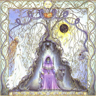 The Elder tree is symbolic of sacrifice (which is why it is an appropriate wood in the Harry Potter books for Dumbledore's wand, by the way). "Ruis" means red and is symbolic of blushing or the embarrassment we may feel when we make mistakes. Thus the Elder Mother teaches us that all great gain comes with sacrifice. Loyalty to Lady Ellhorn, however, in the form of tapping into our own inner otherworld and tending the roots of our creativity, can result in wondrous enchantment!