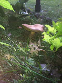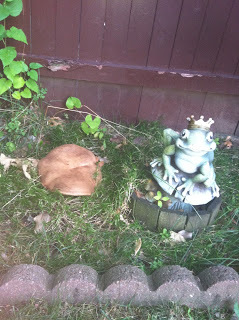 Looks like a loaf of bread that somebody threw over my fence next to my Frog Prince, right?That's what I thought.Wrong.