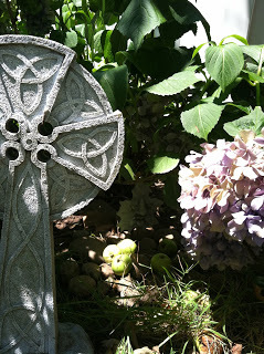 Look closely....you'll see the little Green Man who guards the door to the Tylwyth Teg in my garden...