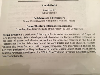 On October 25, I had the honor of watching Corporeal Arts Inc. perform Revelations , a work in progress based on my novelette Love Lies Bleeding: The Lady of the Forest.