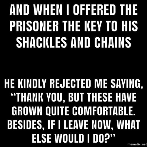 Perhaps some #prisoners don’t want #freedom ? #platoscave #itsametaphor #breakthehabit #breakthechains #freeyourmind #inspirationalquotes #motivationalquotes