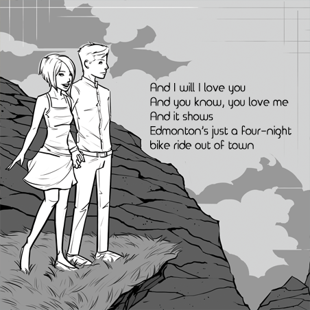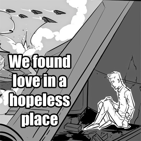 The first song that ended up on the list was We Found Love by Rihanna. It didn't even stay on the list that long. She's an artist I listen to that often, but there was something about this song that kinda hit me. The way the chorus repeats itself - "We found love in a hopeless place" over and over again, the way you can't really tell if it's a good thing or a bad thing, but that line ended up setting the world where Helium would take place. It's the kind of pop music I've always secretly been a fan of, the subversively depressing, dance to the beat of your broken heart appeal that when done right works really well.I didn't spend too much time listening to Rihanna as I was writing the story though, instead I ended up going back and forth between two different songs. Four Night Rider by The Alberta Rural Advantage and Arron the Afterthought Astronaut by Fishboy.