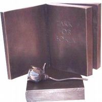 Jeg er fremdeles altfor lamslått av glede til å skrive noe vettugt og velformulert om dette. For stadig vekk tror jeg det må være en drøm. Men så står den altså der oppe i stua, denne solide bronseboka. Og den er så tung at hvis man mister den på foten, blir det minst et par brukne tær. Yngstemann og jeg har til og med veid den. Sju kilo bronsje. Sju kilo helt virkelig bronsje, utrolig nok.