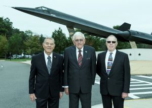 On October 13, Frank Murray (CIA A-12 pilot), Harry Martin (AF fuels specialist), and TD Barnes, former Area 51 Special Projects and author of The CIA Area 51 Chronicles were the guests at CIA Headquarters where we interviewed with historians, Public Affairs, the EAA, and the CIA Museum Director. The Central Intelligence Agency staff treated them to a private lunch at Hqs. The three-book series is The Angels about the U-2 plane and the genesis of Area 51. The book “The Archangels cover the CIA’s A-12 spyplane era. The Company Business covers what the CIA did at Area 51 following the A-12 project OXCART. These include the stealth programs and the exploitation of foreign technology. The photos are believed to be the first ever taken of visitors at the A-12 plane.