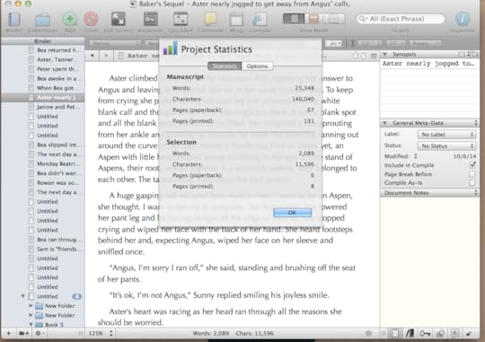 I'm working the parallel plot lines and things are happening. I have 25,000 words, which in NaNo Land would be halfway but since I'm aiming for a real length with the sequel it's not even close. But! It's words on the page. Words on the page is the hardest battle.Yesterday I read a blog post by a writer who keeps track of every single word he writes in a spreadsheet. He's written a million words this year. How motivating! I love word counts but I hadn't thought of having a running word count that included every project. I need that. I'm starting that today.