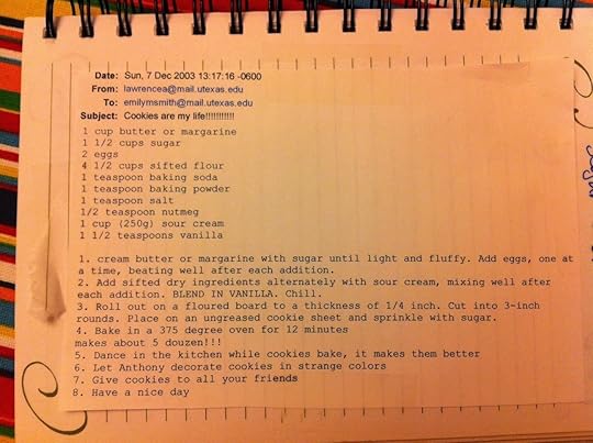 When I first baked these bookies eleven years ago with my friends I never imagined that I would be baking them with my own son. We made these yesterday for his class party at school. Who knew this special sugar cookie recipe with sour cream and nutmeg would have such staying power? Who knew it would become such an important fixture in my life? It all started with dancing in the dorm kitchen.