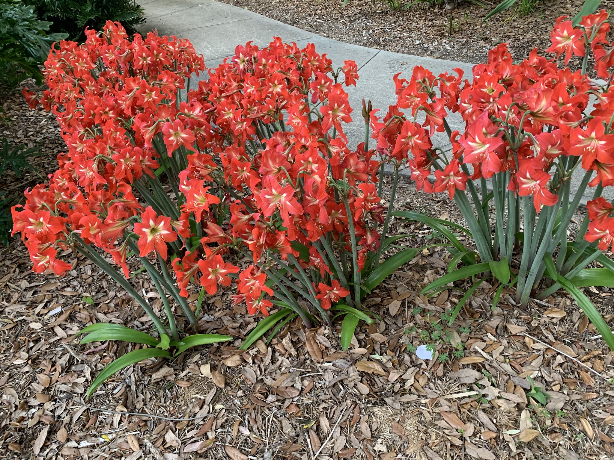 At home, my amaryllis are just starting to bloom. In the gardens at the University of Florida, amaryllis are blooming full-blast.