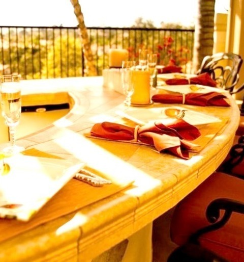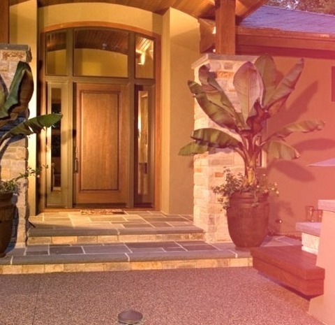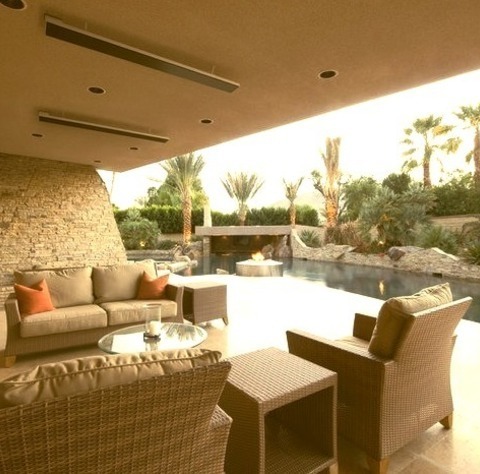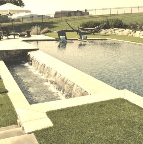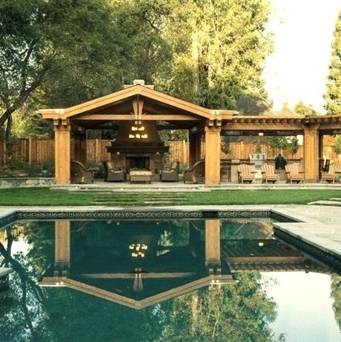 An enormous arts and crafts-inspired backyard design with a uniquely shaped lap pool is an example.