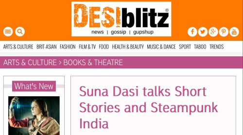 Meanwhile, I spoke to Fatima Farah of Indian magazine DESIblitz about my background and what inspires me when writing inclusive Victoriana fiction: Suna Dasi Talks Short Stories and Steampunk India