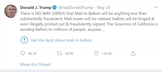 My assumption is that Trump was fact-checked and blocked because his words triggered some algorithm in Twitter. The company has confirmed that “internal systems” rang the warning bells. In my essay at The Bridge, I observed that these algorithms work against the grain of the democratic process, and cannot help but taint the information they touch with their own illegitimacy.