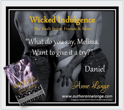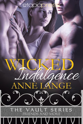 Title: Wicked IndulgenceSeries Title: The Vault Series: Friends and More, Book 2Author: Anne LangeGenre: Contemporary Romance, Erotic, Ménage, Light BDSMHeat Level: Scorching- Sexy, creative and hot, almost anything goes - not for shy readers