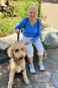 I am grateful for the slow pace and low demands of our comfortable retired life. Grateful for a one-story house. Grateful for generous loans of all necessary equipment a gimp requires. Grateful for meals provided by others so as to not tax my overwhelmed husband further. I’m grateful for our doodle dog, Spark, who intuitively cared for both of us along with continuing to spark joy.
