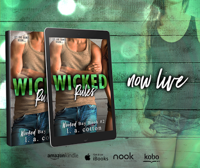 Continue Lo and Maverick’s story in WICKED RULES (Wicked Bay #2) available on major platforms