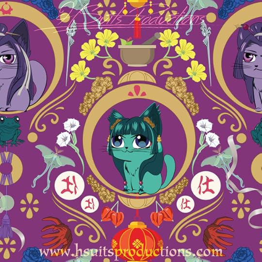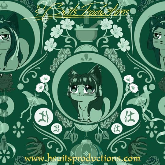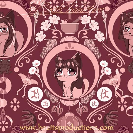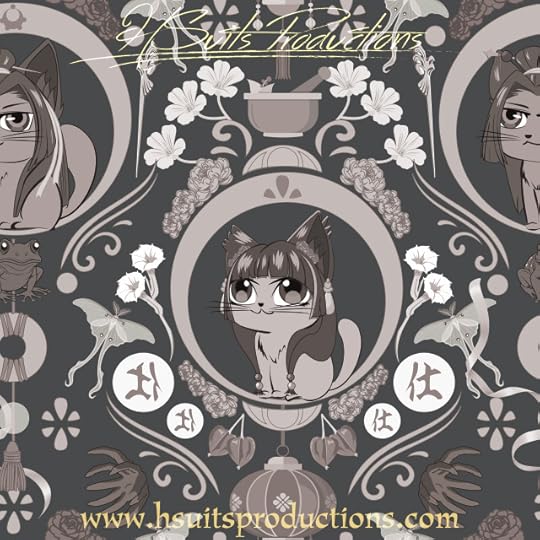 I have a new pattern up on spoonflower! I finished the color variations a little late tonight so yay for an early morning Tumblr release! This one features our favorite Apothecary and her Moon Prince, as cats.