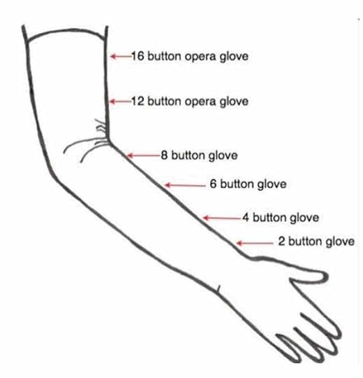 Durante el día las damas llevaban guantes cortos y, en general, de tonos pálidos, aunque debían de ser de piel de cabrito. —Como dice el manual de etiqueta de la mujer: cualquier otro material «era muy vulgar»—. Por la noche fueron alargándose en cada década, llegando a superar el codo y tener hasta veinte botones.