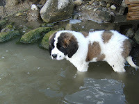 Her first time with her feet in the waterShe was not impressed that I did this to her.Our family lost our St Bernard this year to old age. She lived an incredible life, but ran through it much too fast. She was with her pack, her alpha male holding her close, when she passed on.