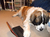 Her reviewing my work.Still not impressed with me.Sometimes, I see a meme where these dogs are running up and down the steps and the St Bernard won't budge on them. Yup. That was her. What a stubborn gal. But never in a bad way. If anything, she just made us laugh.