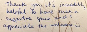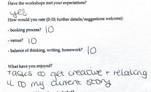 “The 5 minute fiction tasks, really help you focus.”“Giving permission to break rules, to look at new ways to craft poem and think about language”