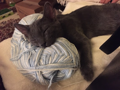 I never, ever let Wolfie or Victor play with my yarn. He simply plopped down for a nap on it, for some reason. If I'm knitting and he wants to play, I put the yarn away and play with him.