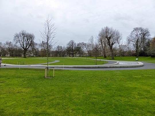 It has 545 individual pieces of Cornish granite made into an oval stone fountain through which runs some water. The guide book says it is surrounded by lush verdant grass, it’s surrounded by mud. They reworked the area around the fountain to improve the drainage but frankly, it looked a mess.It’s 3 to 6 m wide and it runs at an angle so the water gets pumped back up to the top.The two sides are different, to reflect the two sides of Diana’s life; happy and turmoil.It was supposed to allow paddling and contemplation with folk standing in the water, but three girls were hospitalised soon after it opened. It was very slippy and it was closed. Beautiful but dangerous. Maybe that is a truer comment on Diana.