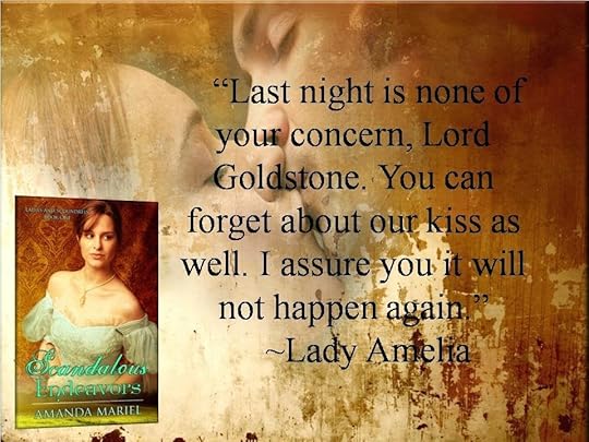 Join Amanda Marie on Facebook at https://www.facebook.com/#!/AuthorAmandaMarie1Visit her blog at http://musingsbymandy.wordpress.com/Write to Amanda Marie at amandamarieauthor@gmail.comFollow her on Twitter www.twitter.com/AmandaMarieAuthThree Worlds Press http://www.threeworldsproductionsllc.com/?mbt_book=scandalous-endeavorAmazon Author Page http://www.amazon.com/-/e/B00RKDC3CIGoodreads: https://www.goodreads.com/author/show/10209362.Amanda_MarieStreet Team: https://www.facebook.com/groups/794424853928522/Website: http:amandamarieauthor.wix.com/amandamariel