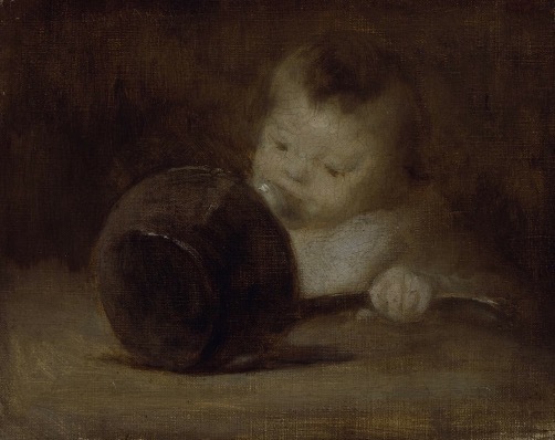 So there we were. Paris. This was 2010, before smartphones had been invented (well, in our house, anyway) and we’d forgotten the camera, so we bought a disposable one – the viewfinder of which, we subsequently discovered, was aligned in such a way as to make sure we were only taking pictures of each other from the knees down. The first thing we did was get lost on the way to the hotel. Then, once we’d found it and dumped our bags, we got lost again (which was fine – you don’t really know a city until you’ve repeatedly got lost in it). At one point we found ourselves on Rue Eugène Carrière, named after the painter. This was a cause of jubilation, because a few years earlier we’d found ourselves transfixed by a tiny picture of his, Enfant avec une casserole, at Aberdeen Art Gallery, and an oversized canvas of it hung on our wall at home (it still does). Suddenly, by mistake, we were lost on a road named after him.