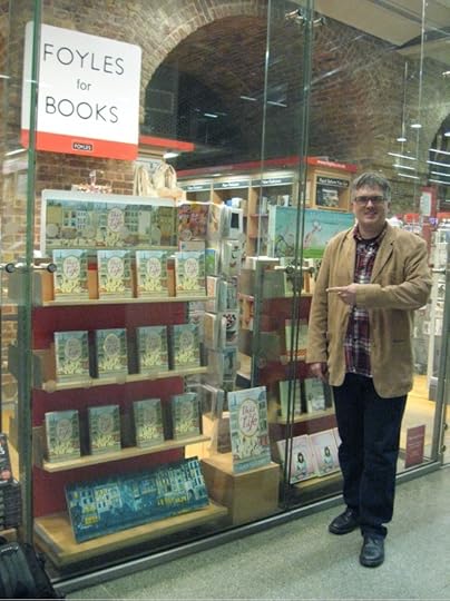 A total stunner from Dermot Flynn & Rafaela Romaya, in conjunction with the publisher’s in-house art department. I could hardly believe I had such a beautiful book out. It was printed on high quality paper, too. Bookshops loved it, it was picking up great coverage, and was selling well. It was the kind of book that’s in such a magical edition that people are going to want it even if they have no idea who I am or what it’s about. As a thing alone, it was an amazing object. I was so proud of it. Here it is in the window of Foyles at St. Pancras Station, home of the Eurostar, where it was selling like a dream. Look how happy I am. [I still have that shirt. I wear it when I’m decorating.]